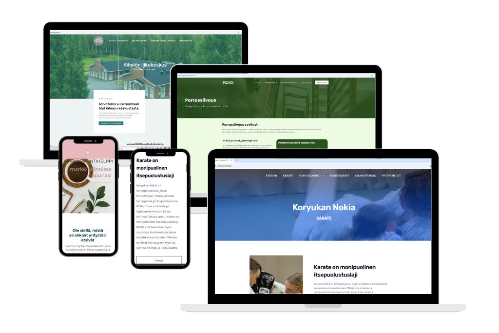 3 laskeutumissivua (esim. etusivu, ohjelma, yhteystiedot)